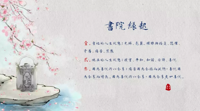 ? ?【孝根書院】以琴、棋、書、畫、茶和漢文化元素為底色,以弘揚(yáng)孝道,注重家庭、家教、家風(fēng)為主線,傳播優(yōu)秀的傳統(tǒng)文化,導(dǎo)引人們創(chuàng)造并享受美好生活。?